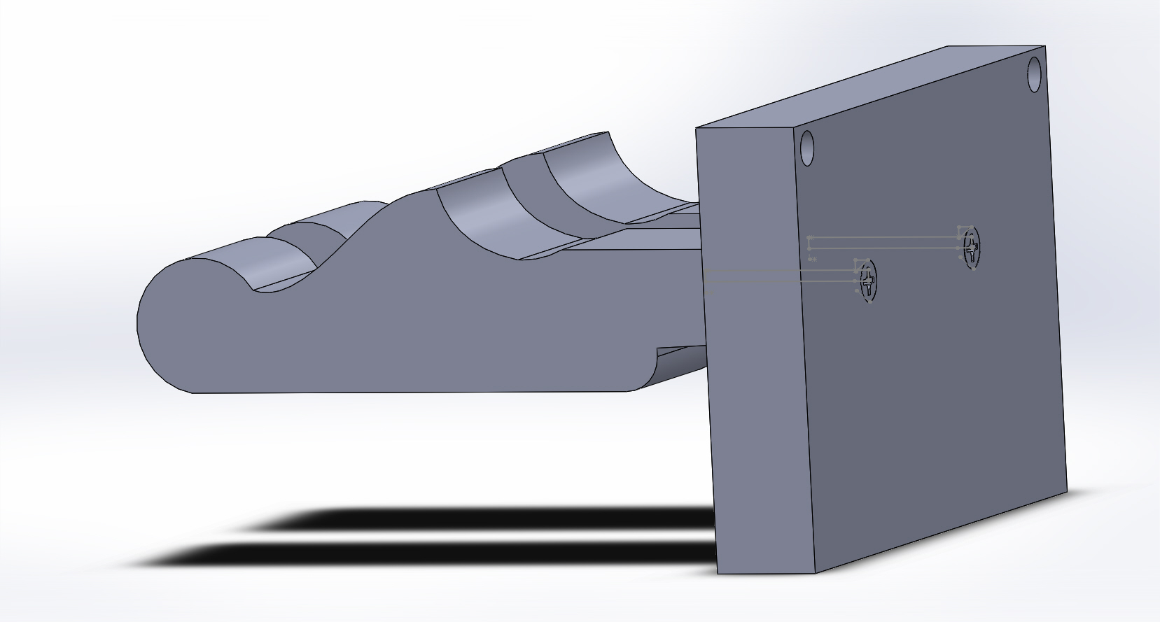 The final product would have wood-metal interactions, so the joints would need to be changed accordingly. I planned on having a tapped hole in the cast piece (headstock) and a clearance hole in the wood in order to screw the two together from the back of the wood piece (face that is in contact with the wall). With regards to the type of wood to use, I considered using two american hardwoods (one dark and one light) to create a striped design while the metal I used was an aluminium alloy, something that is both light and durable.